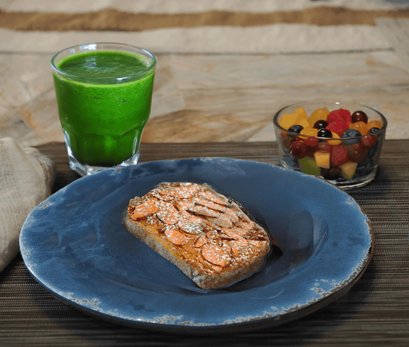 - Serve: Dust the warm bostock with powdered sugar if desired, and serve alongside fresh fruit and pumpkin green smoothie.