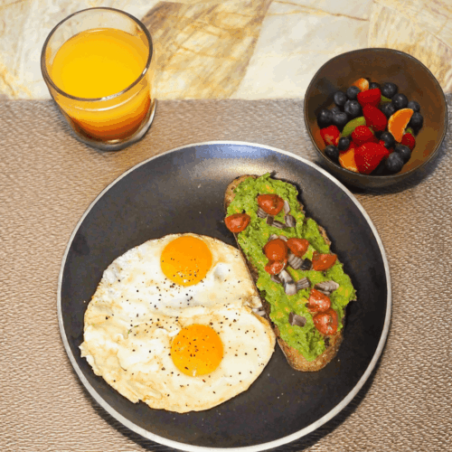 - Serve: Plate the avocado toast with eggs, fresh fruit, and cold orange juice. Enjoy your nutritious breakfast!