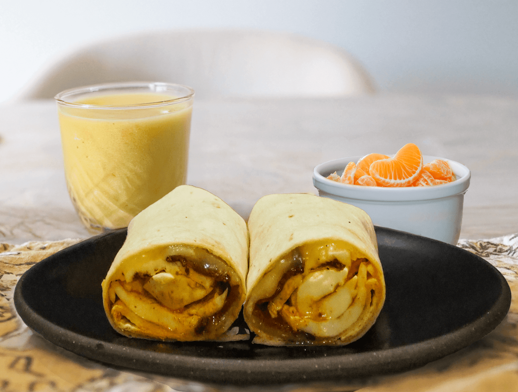 - Serve the breakfast wraps with mandarin orange and mango lassi. Enjoy your breakfast!