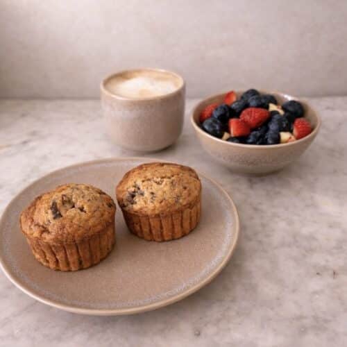 • Serve the oatmeal banana nut muffins with fruit and coffee. Enjoy your breakfast.