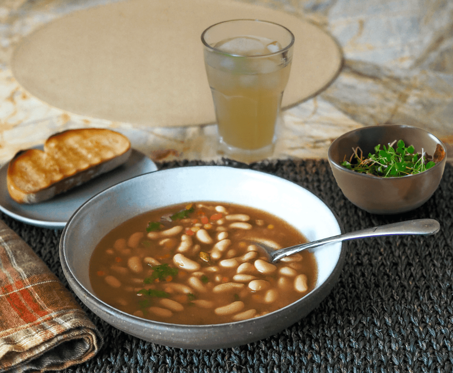- Serve the bean soup with toasted bread, microgreens salad, and unsweetened ginger iced tea.