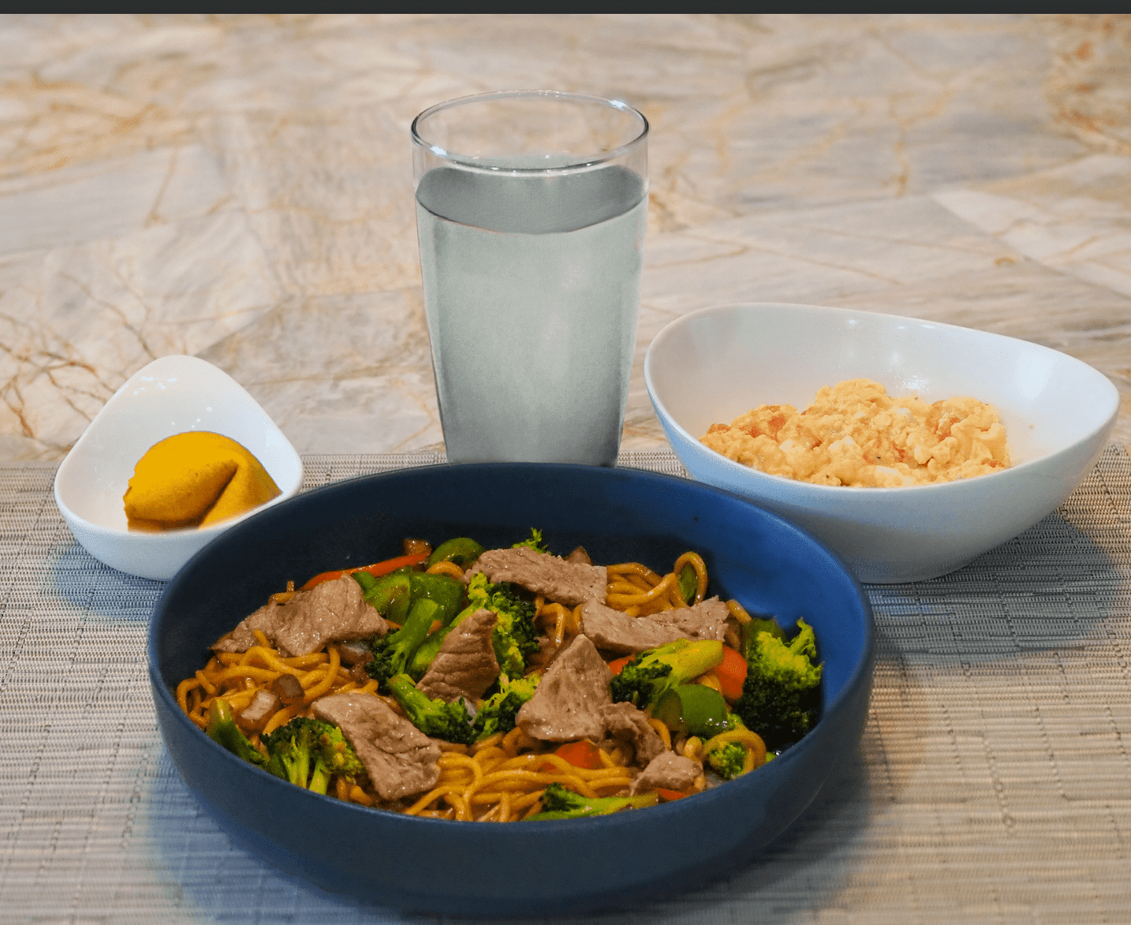 • Serve the lo mein with tomato egg stir fry, coconut water, and fortune cookies.