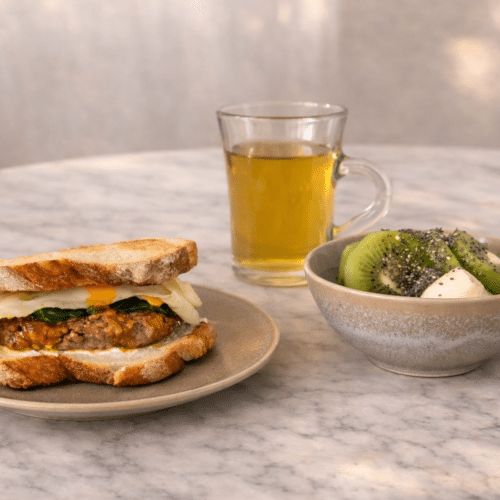 - Serve the sandwich with the fruit and hot green tea.