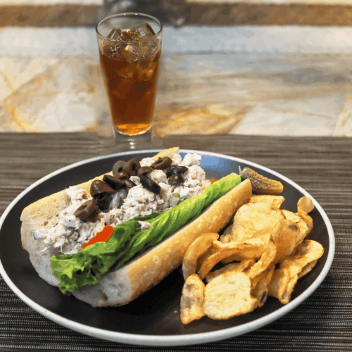- Serve the Bocadillo de Atún with potato chips, pickle spears, and rooibos iced tea.