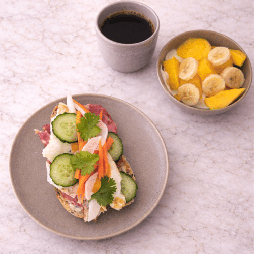• Serve the breakfast banh mi with the yogurt and fruit and coffee.