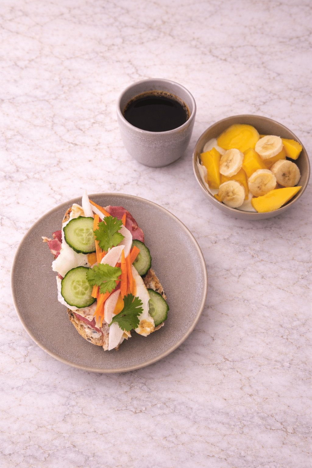 • Serve the breakfast banh mi with the yogurt and fruit and coffee.