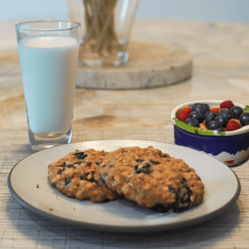 - Serve: Remove the no-bake breakfast cookies from the fridge and enjoy cold, paired with glasses of cold milk and fresh fruit.