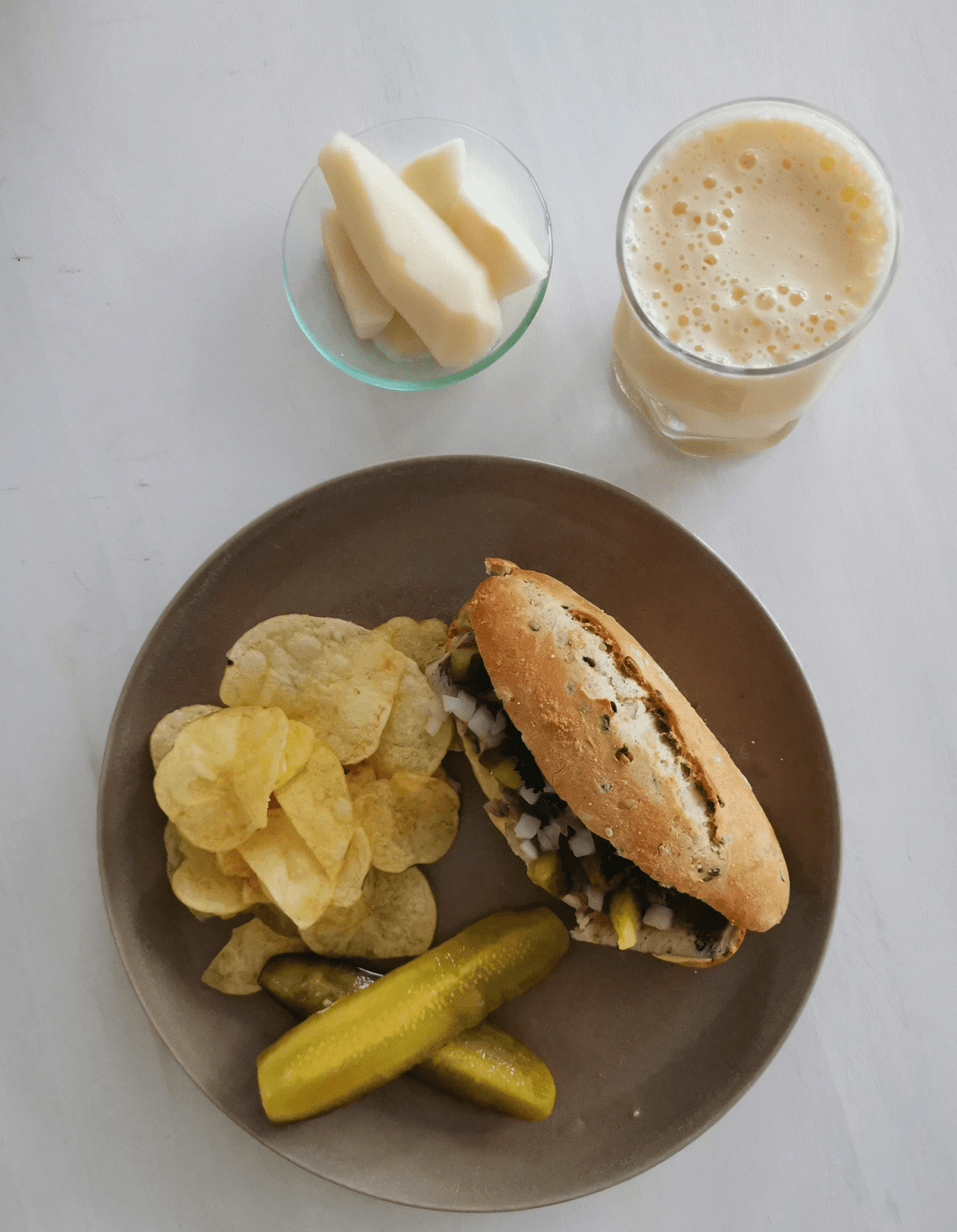 • Serve: Serve the broodje haring alongside potato chips, pickle spears, pear slices, and the mango lassi.