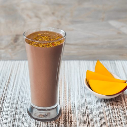 - Serve: Pour the smoothie into glasses. Top with soaked goji berries and bee pollen if using. Serve with mango slices on the side.