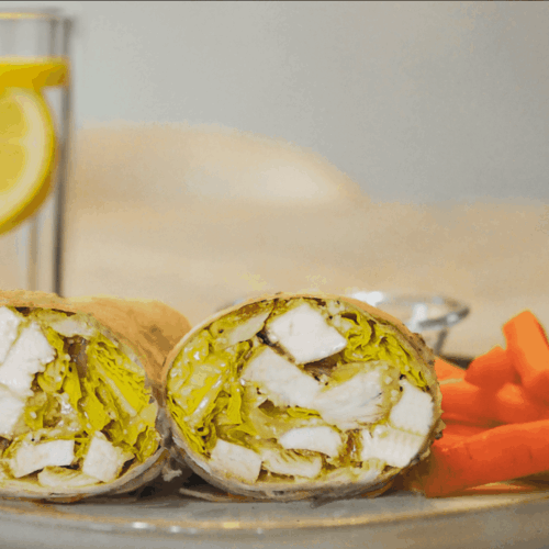 • Serve the chicken Caesar salad wraps with carrots and hummus alongside lemon sparkling water.