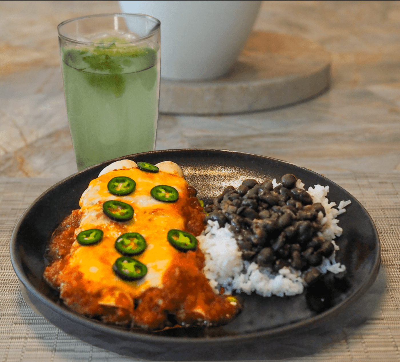 • Serve the enchiladas with rice, black beans, and Moscow mule mocktail.
