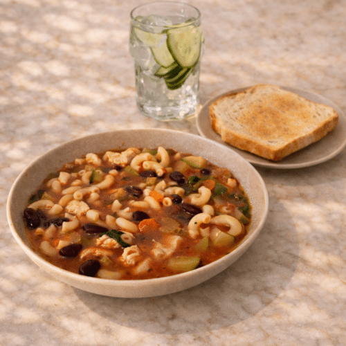 - Stir in the pasta and continue to simmer for 8–10 minutes, until the pasta is tender and the chicken reaches an internal temperature of 165°F (74°C).