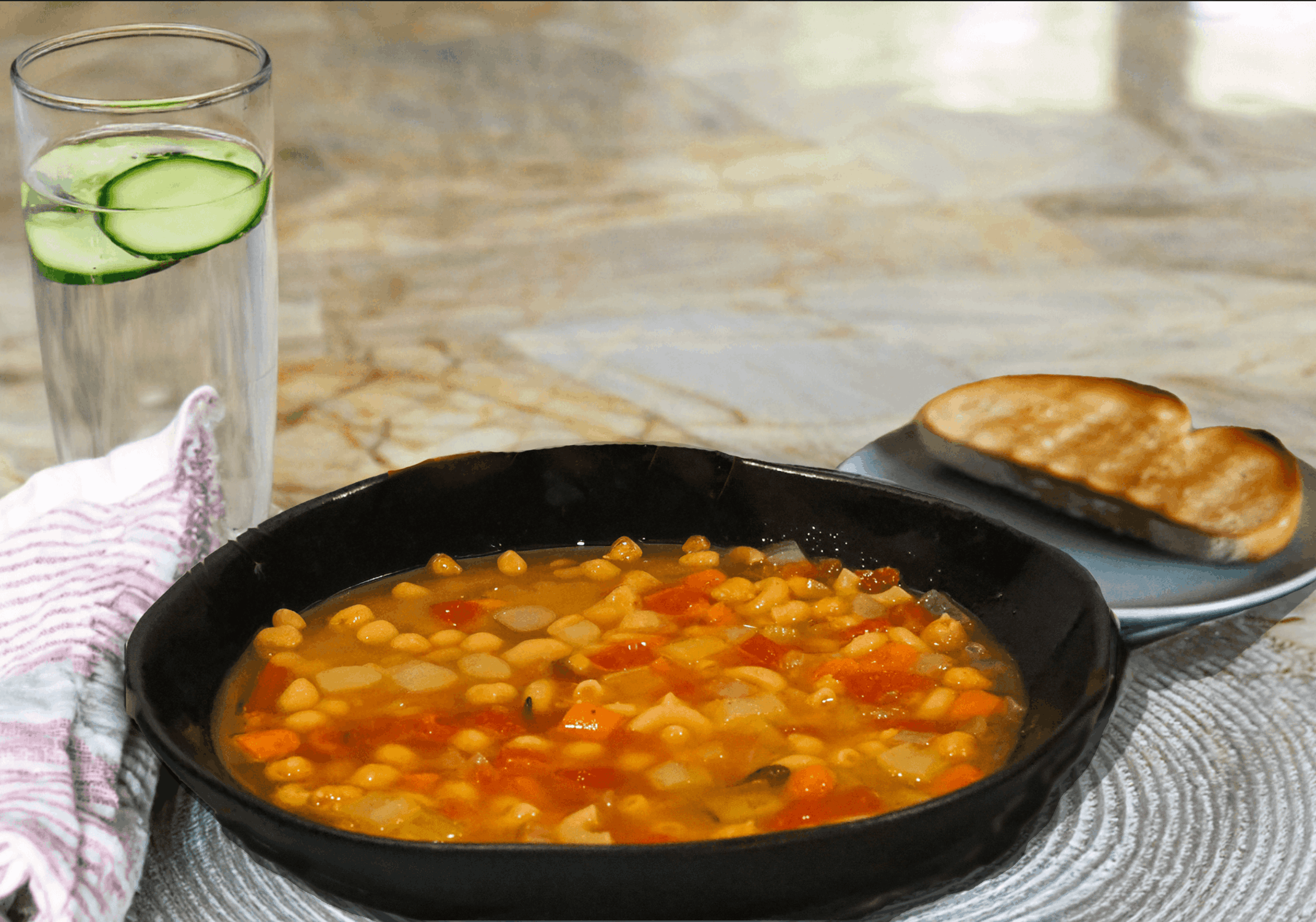 - Serve the soup with sourdough bread and cucumber water.