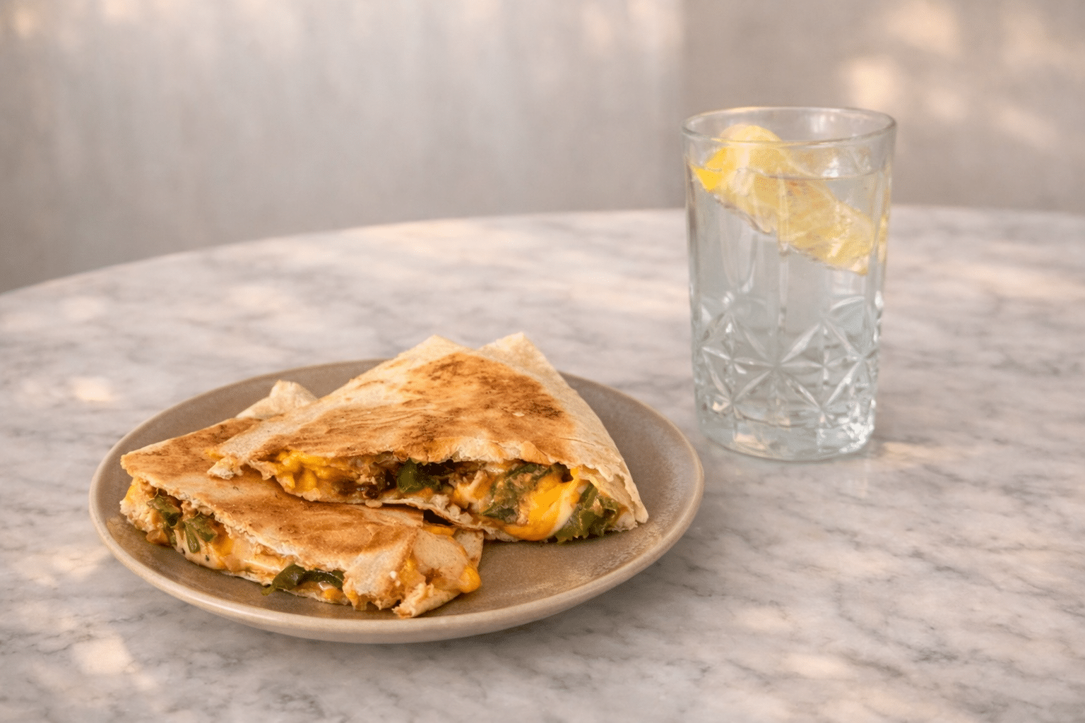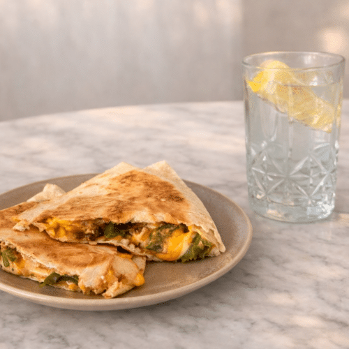 • Serve the chicken quesadilla with the lemon sparkling water.