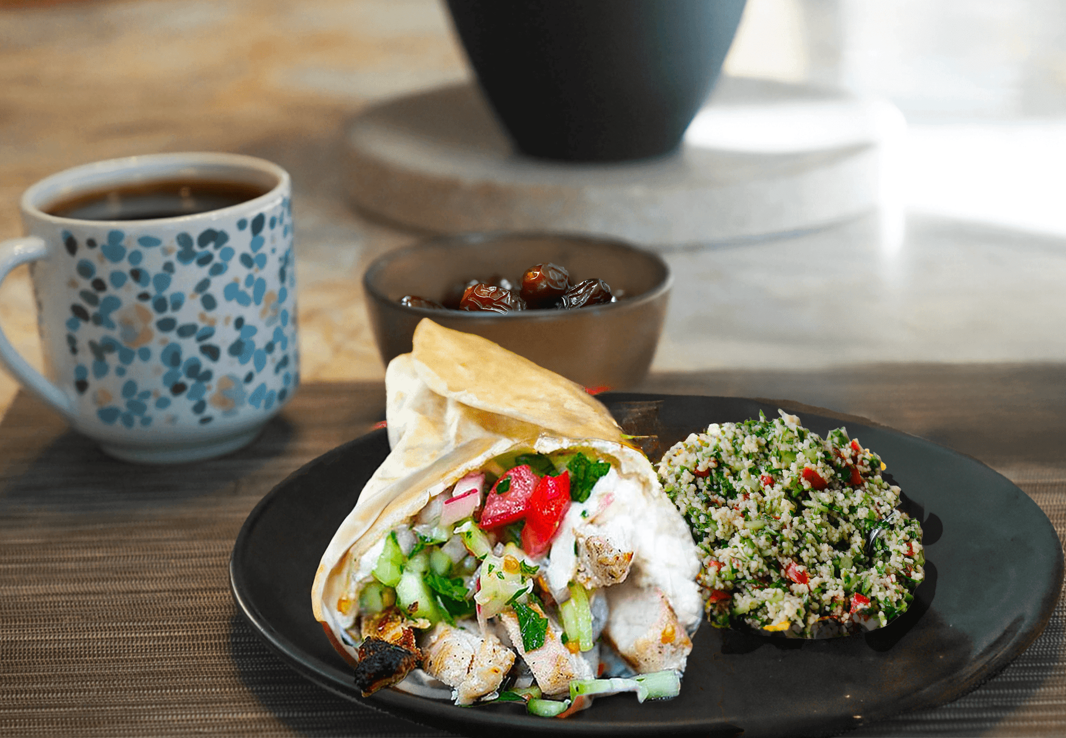 - Serve the chicken shawarma wraps with tabbouleh, chamomile tea, and dates.