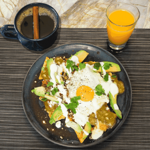- Serve: the chilaquiles with spritzer and Café de Olla. Enjoy your flavorful Mexican-inspired breakfast!