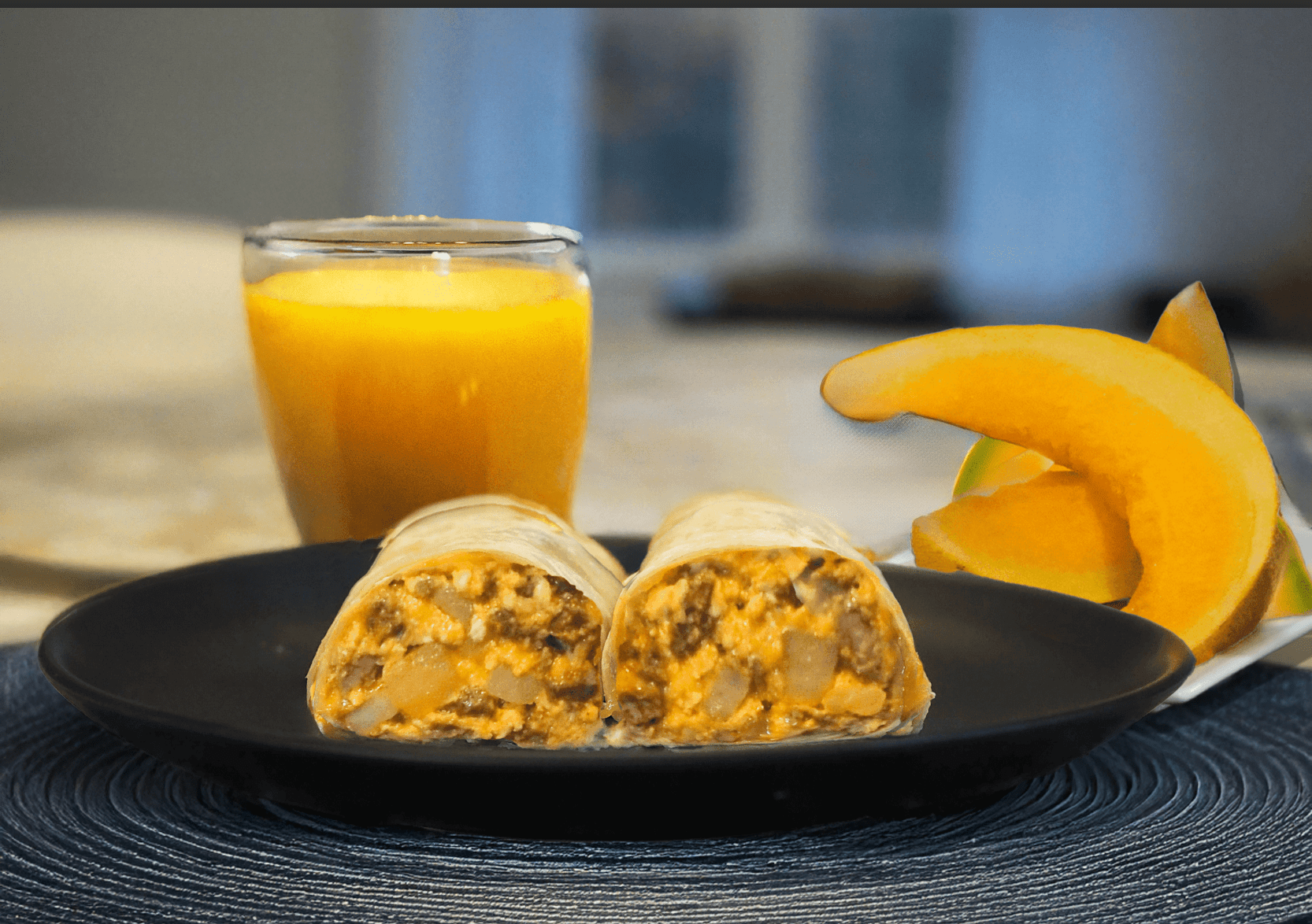 - Assemble Wraps: Spoon the chorizo-potato-egg mixture into the tortilla. Fold in the sides and roll tightly. Slice in half.