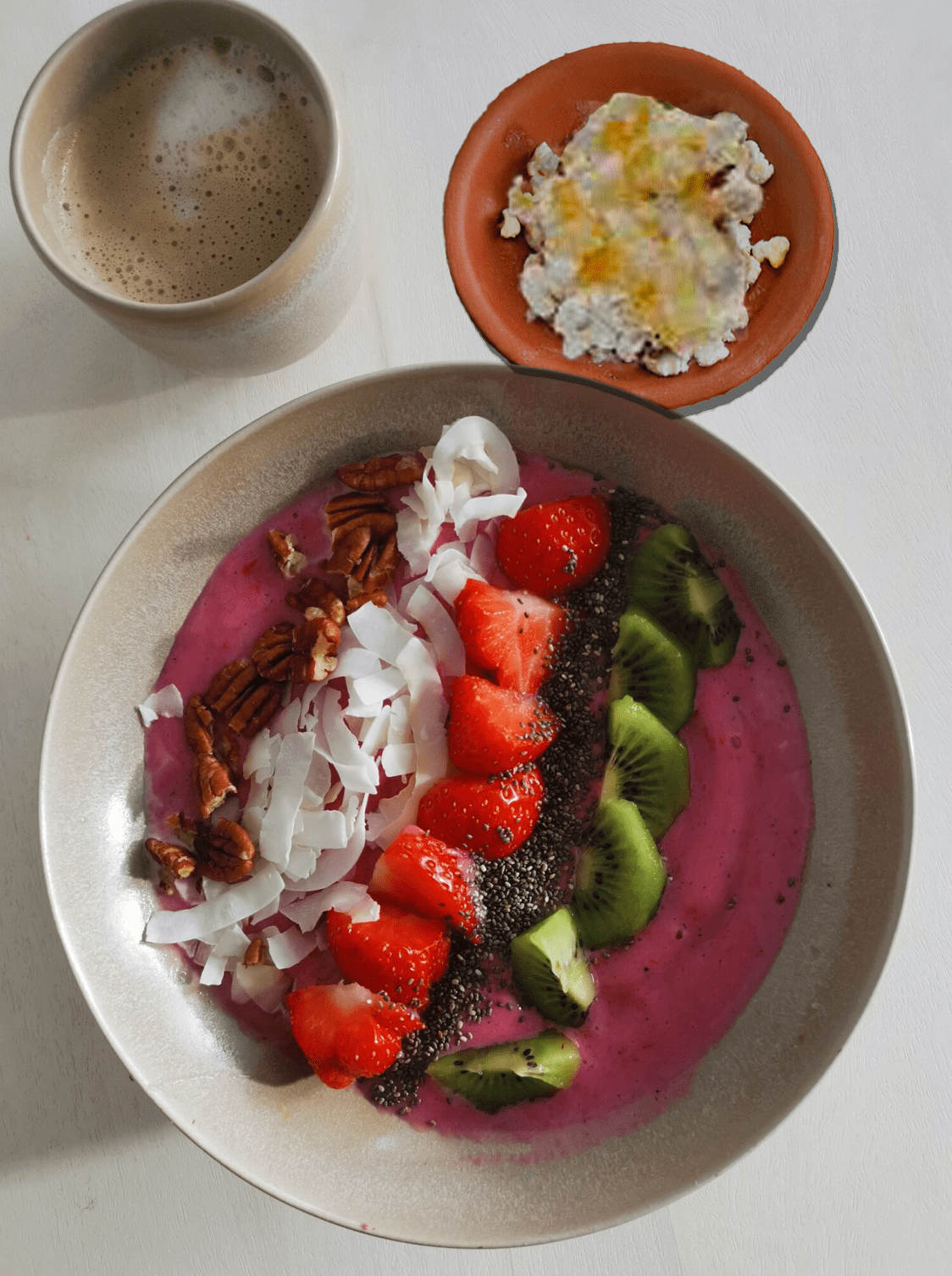 - Serve the smoothie bowl with cottage cheese and coffee.