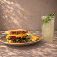 - Serve the sandwich with apple slices and cheese alongside mint lemon sparkling water.