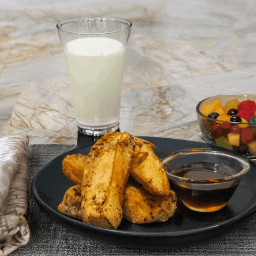 - Serve the French toast sticks with maple syrup, fresh fruit, and milk.