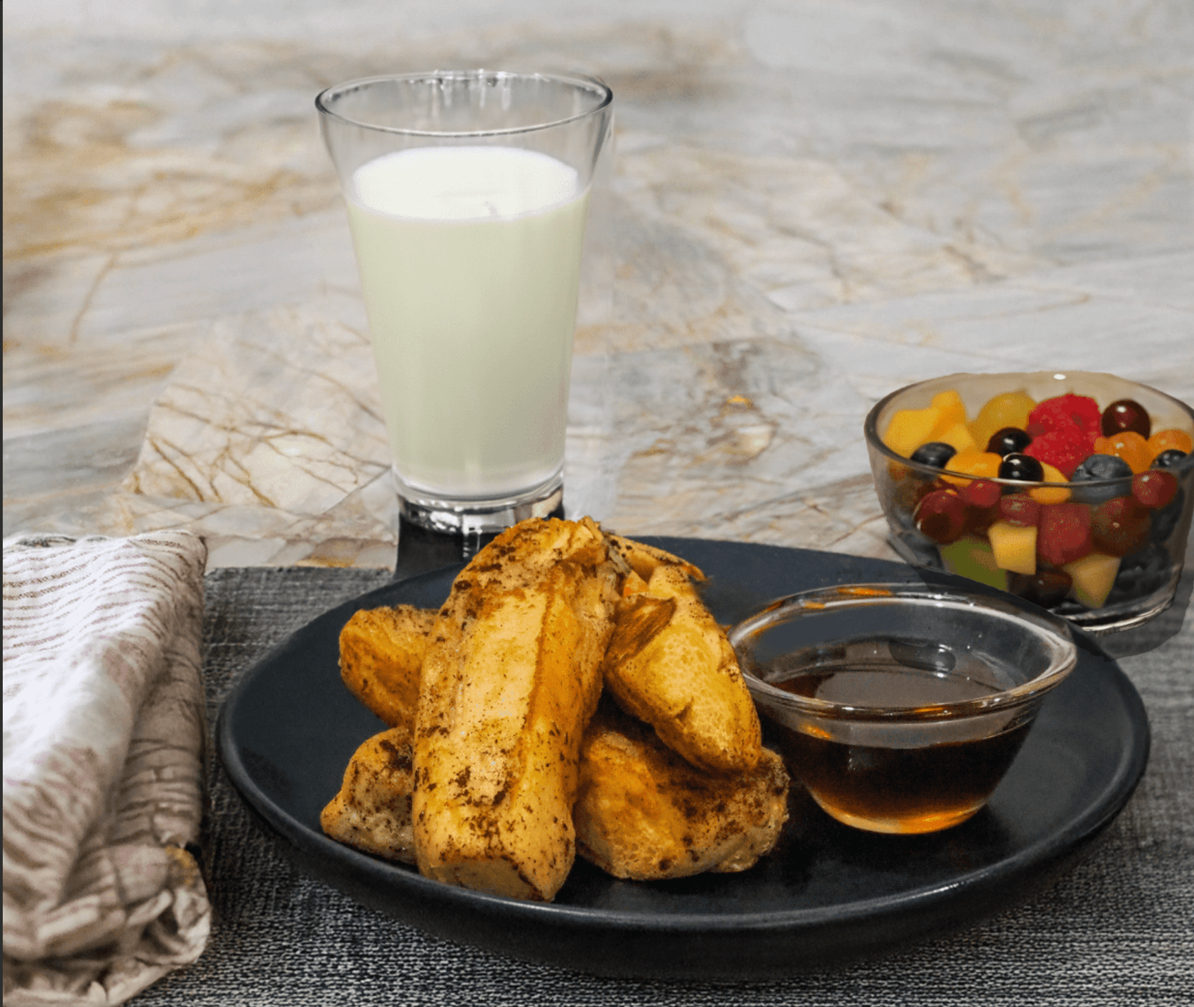 - Serve the French toast sticks with maple syrup, fresh fruit, and milk.