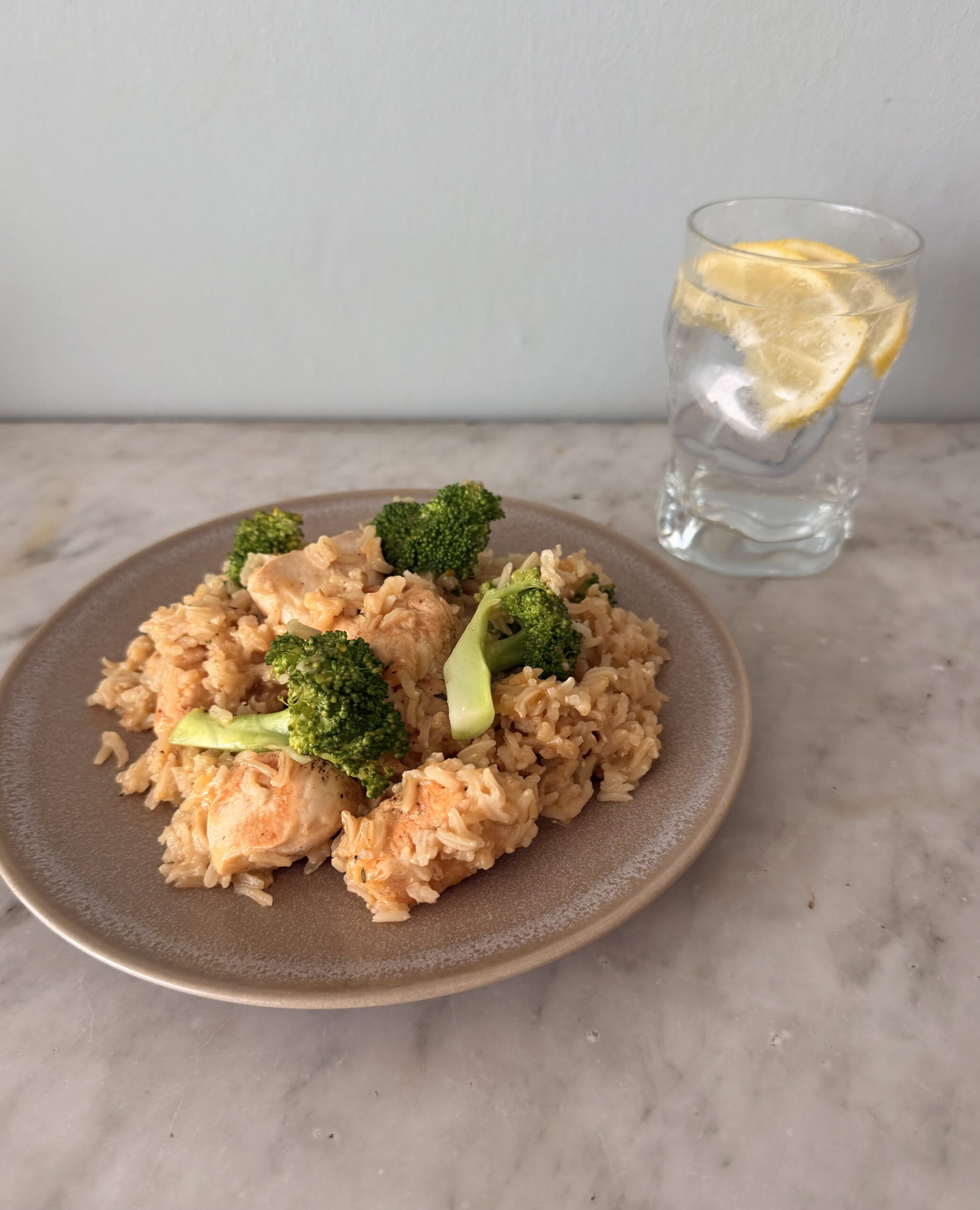 Greek One-Pot Broccoli Cheesy Chicken & Rice Casserole