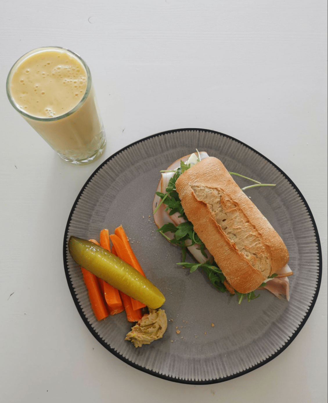 - Serve the jambon beurre with carrot sticks, hummus, pickle spears, and mango lassi.