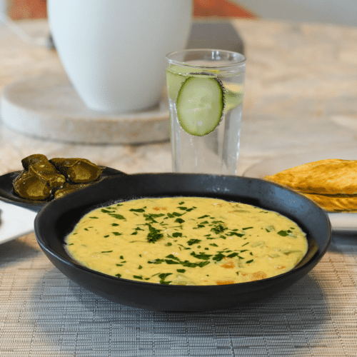 - Serve the chicken lemon rice soup with dolmas, pita, watermelon slices, and cucumber water.