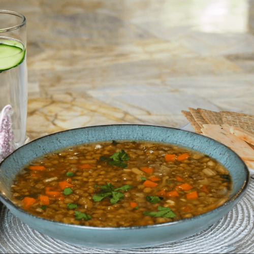 - Ladle the soup into bowls and serve hot. Arrange the cheese slices on a plate with the crackers. Serve the cucumber water as a refreshing beverage alongside the meal.