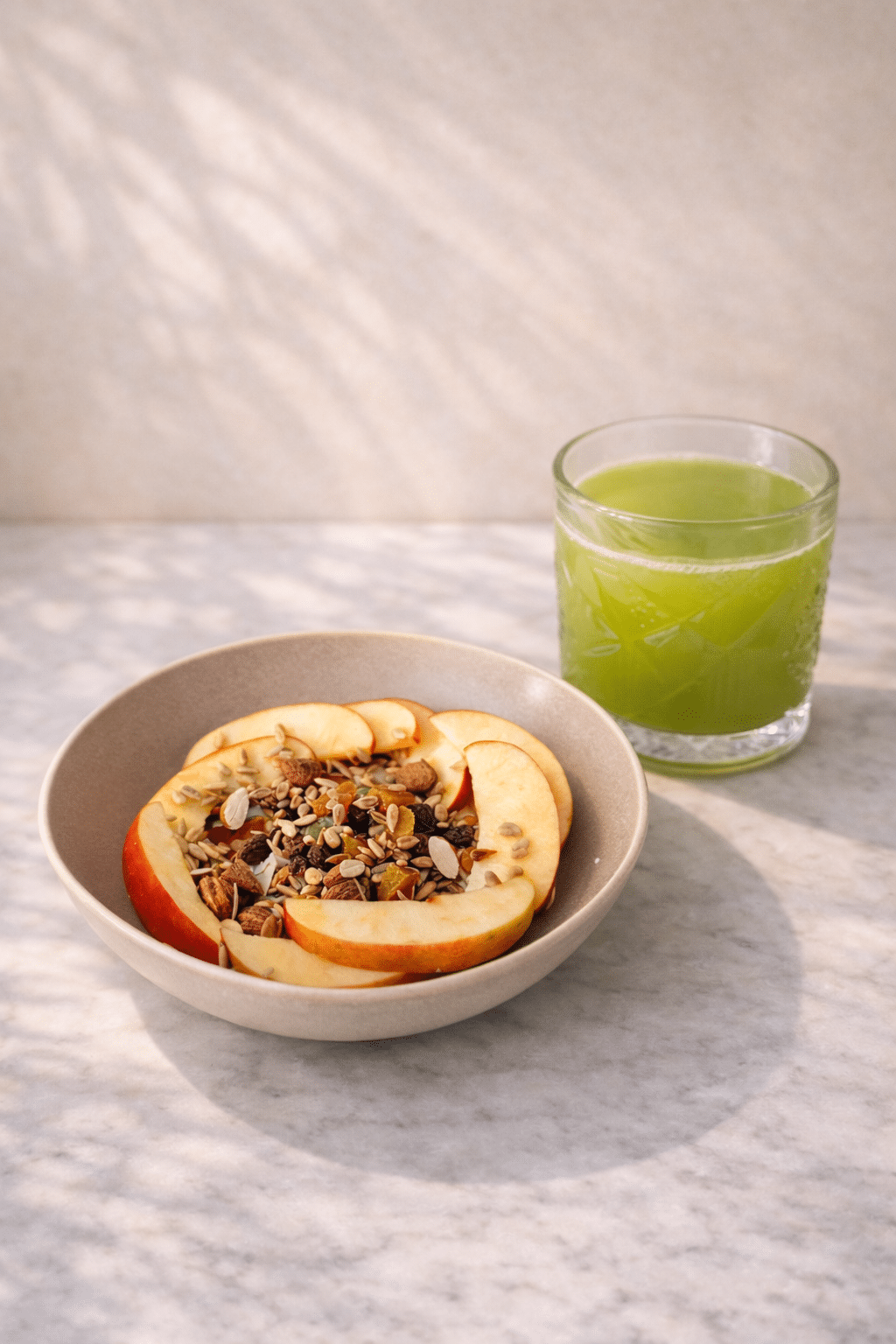 - Serve the muesli bowls with fresh green juice.
