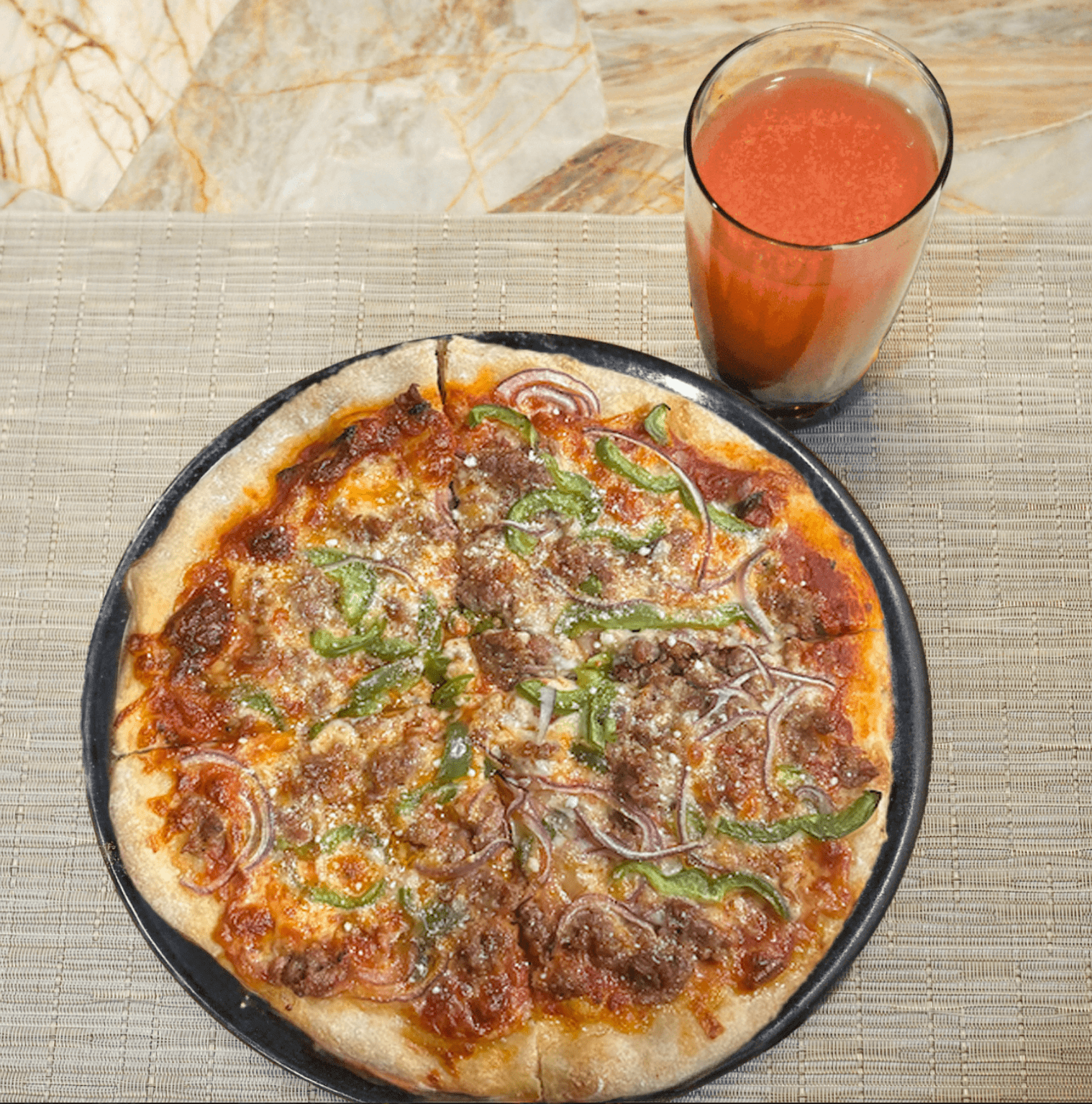 • Your choice of pizza toppings (e.g. pepperoni, sausage, onion, peppers, olives, mushrooms, etc.)