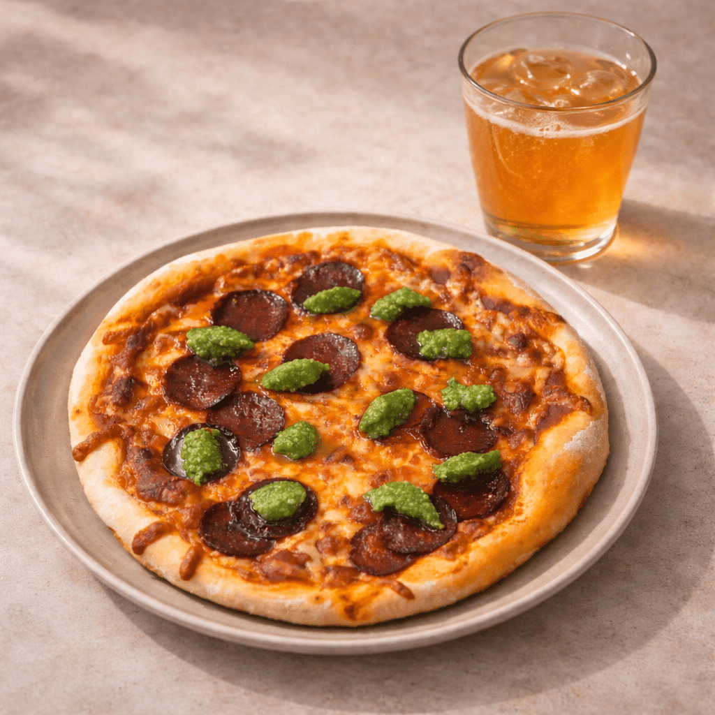 - Remove the pizza from the oven and allow it to rest for 2–3 minutes before slicing.