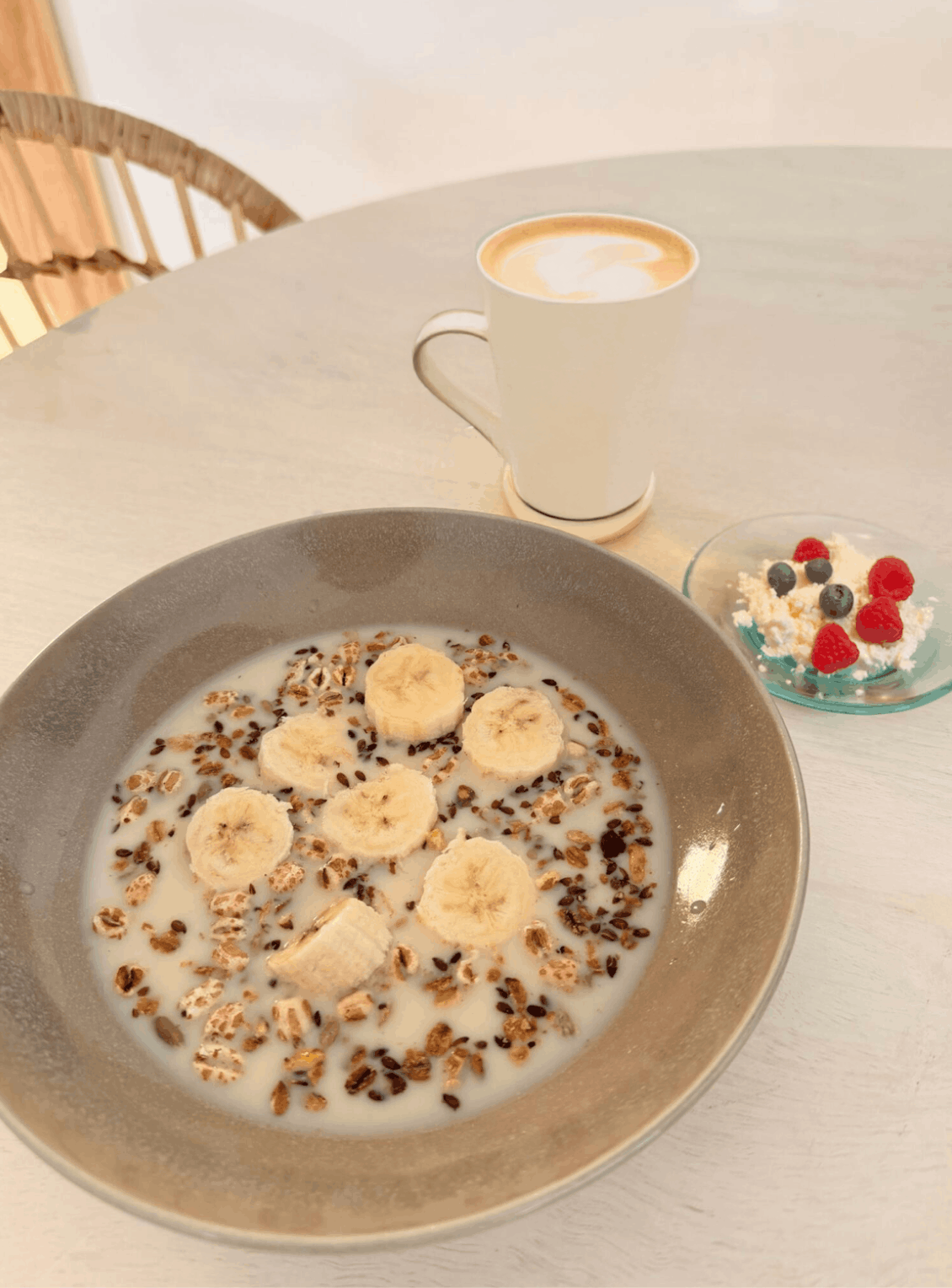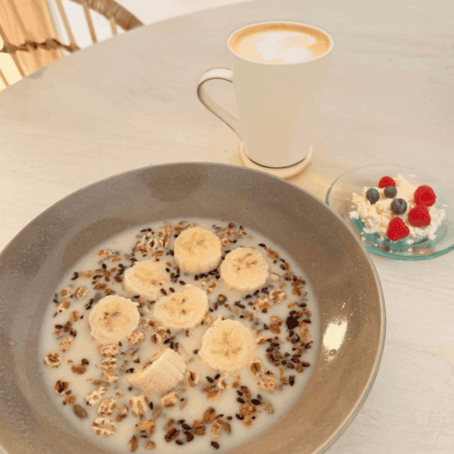 • Serve the cereal with cottage cheese topped with fruit and honey and coffee.