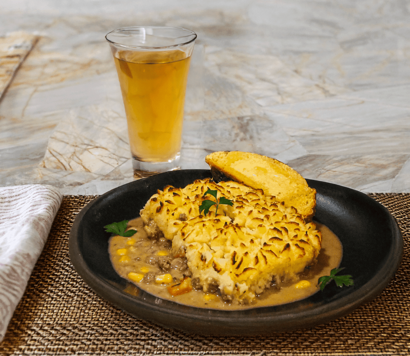 - Let the shepherd's pie rest for 2–3 minutes before serving. Serve with slices of soda bread and apple cider.