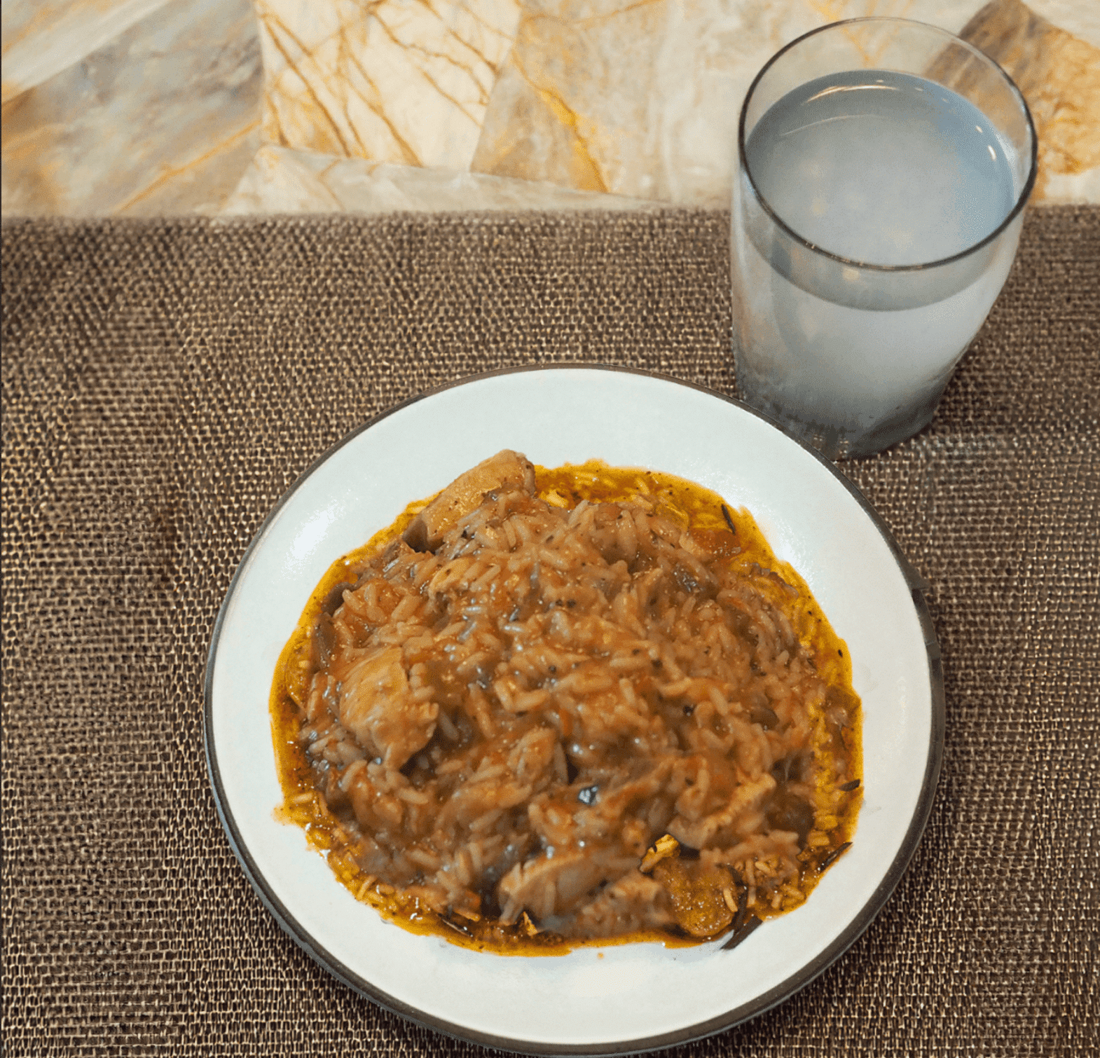 - Serve gumbo over rice and garnish with scallions, and the coconut water.