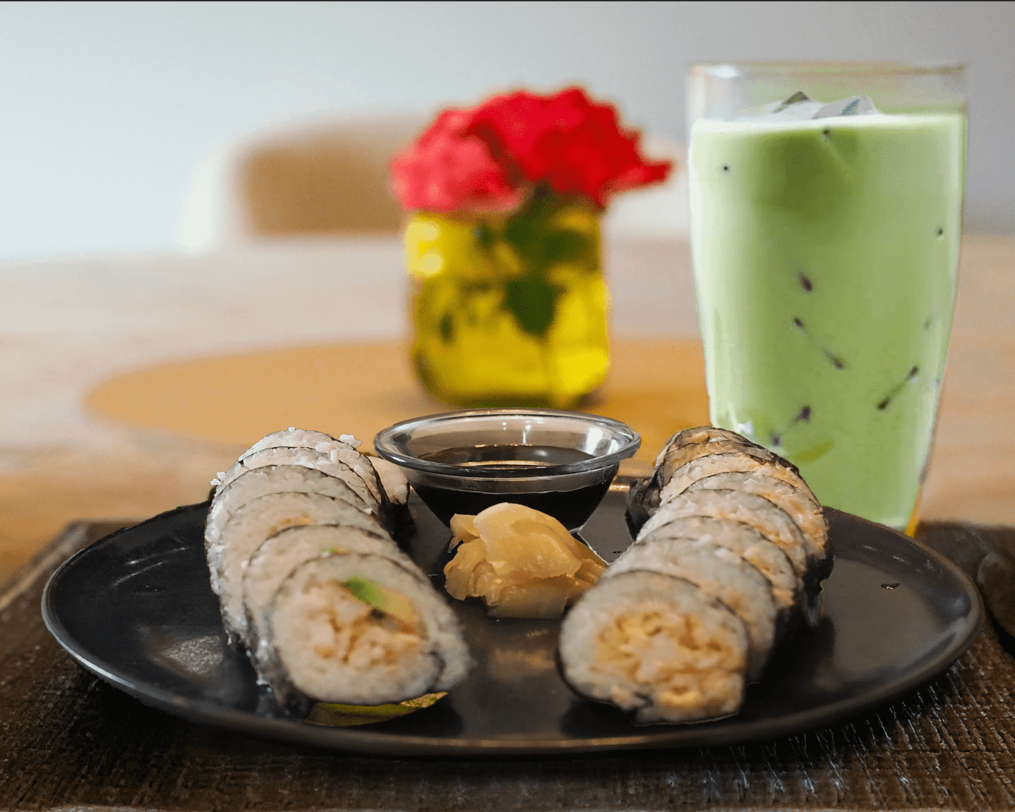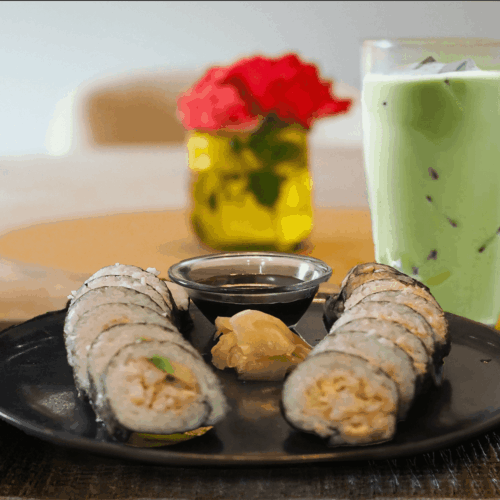• Serve the sushi with optional wasabi, pickled ginger, and soy sauce. Enjoy with iced matcha latte.