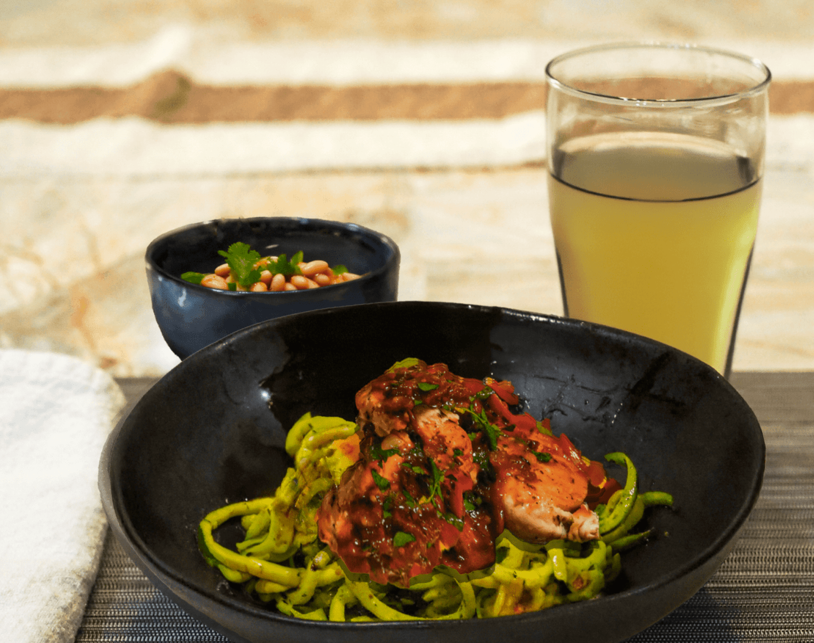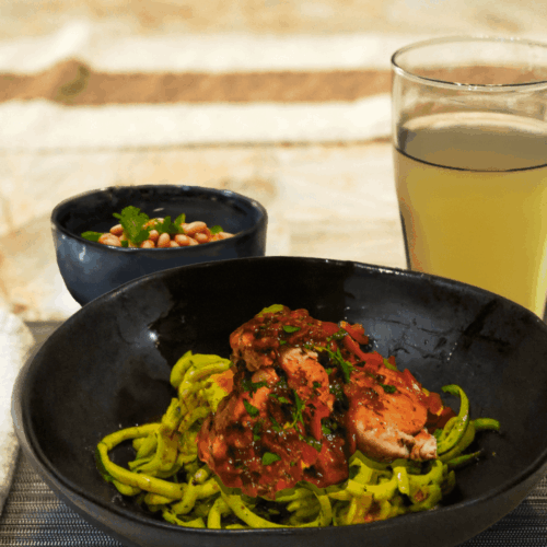 - Serve the chicken and sauce over the zucchini noodles, garnished with fresh parsley if desired.