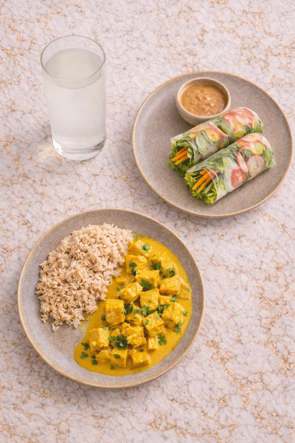 • Serve the Thai yellow curry over rice with fresh spring rolls, peanut sauce, and coconut water.