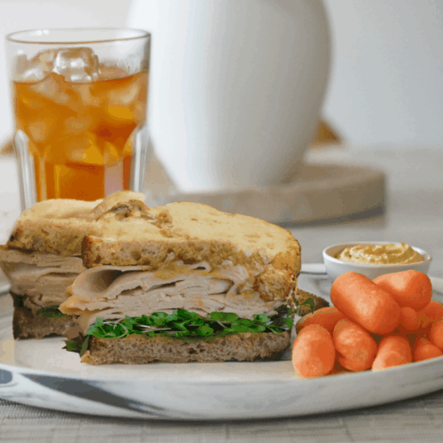 • Serve: Serve sandwiches with carrot sticks and hummus alongside the rooibos iced tea.