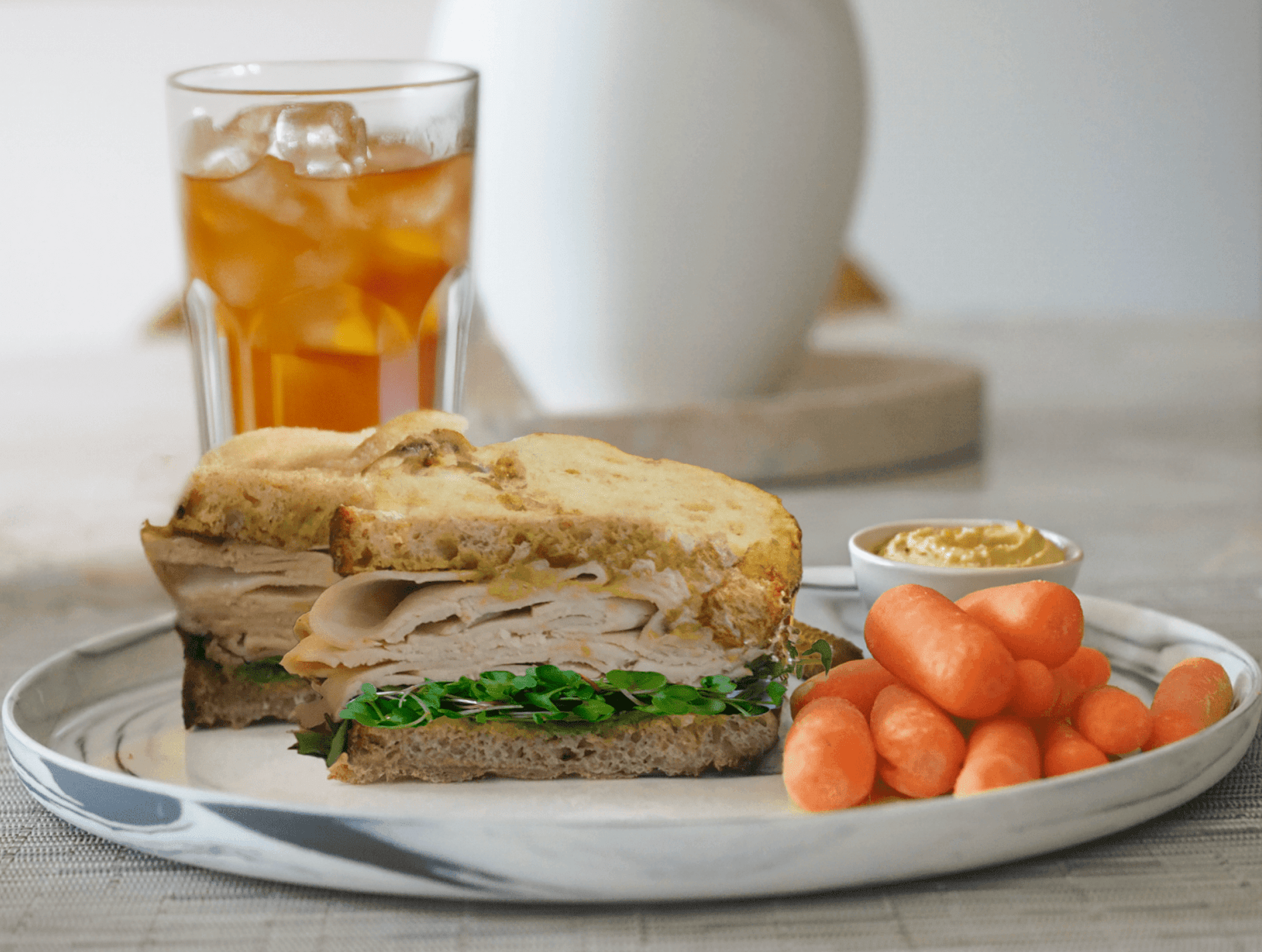 • Serve: Serve sandwiches with carrot sticks and hummus alongside the rooibos iced tea.