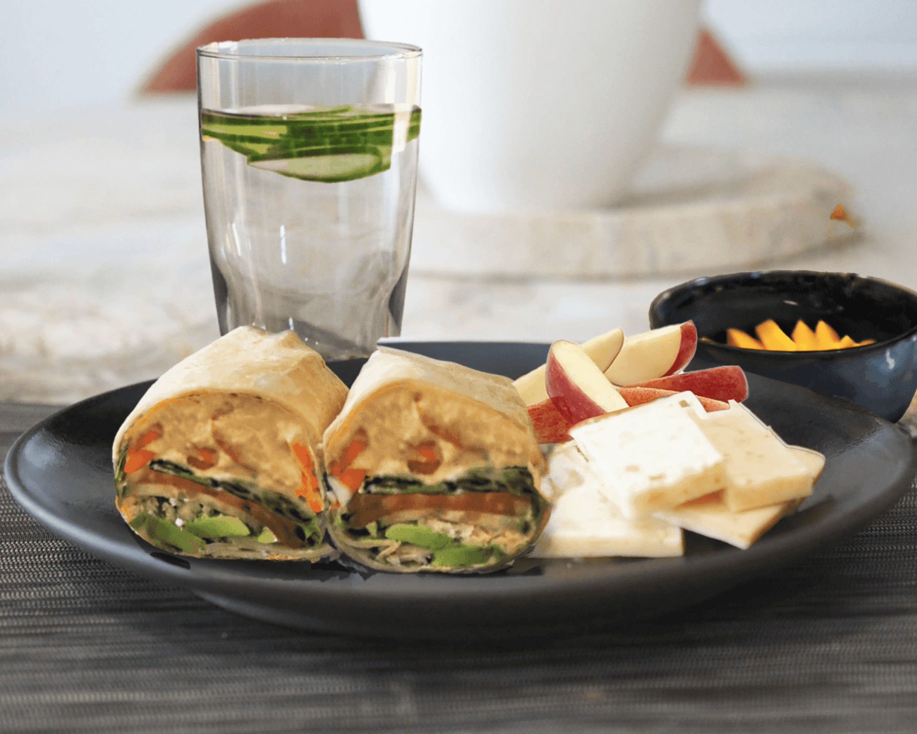 - Serve alongside cheese slices, sliced mango, sliced apple, and cucumber water.