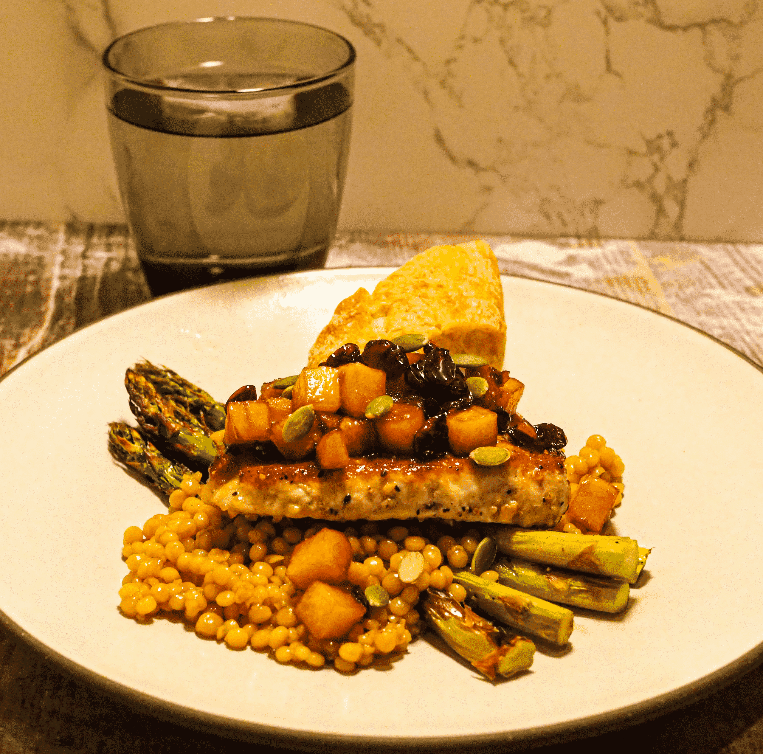 - Spoon the chutney over the pork. Serve with bread.