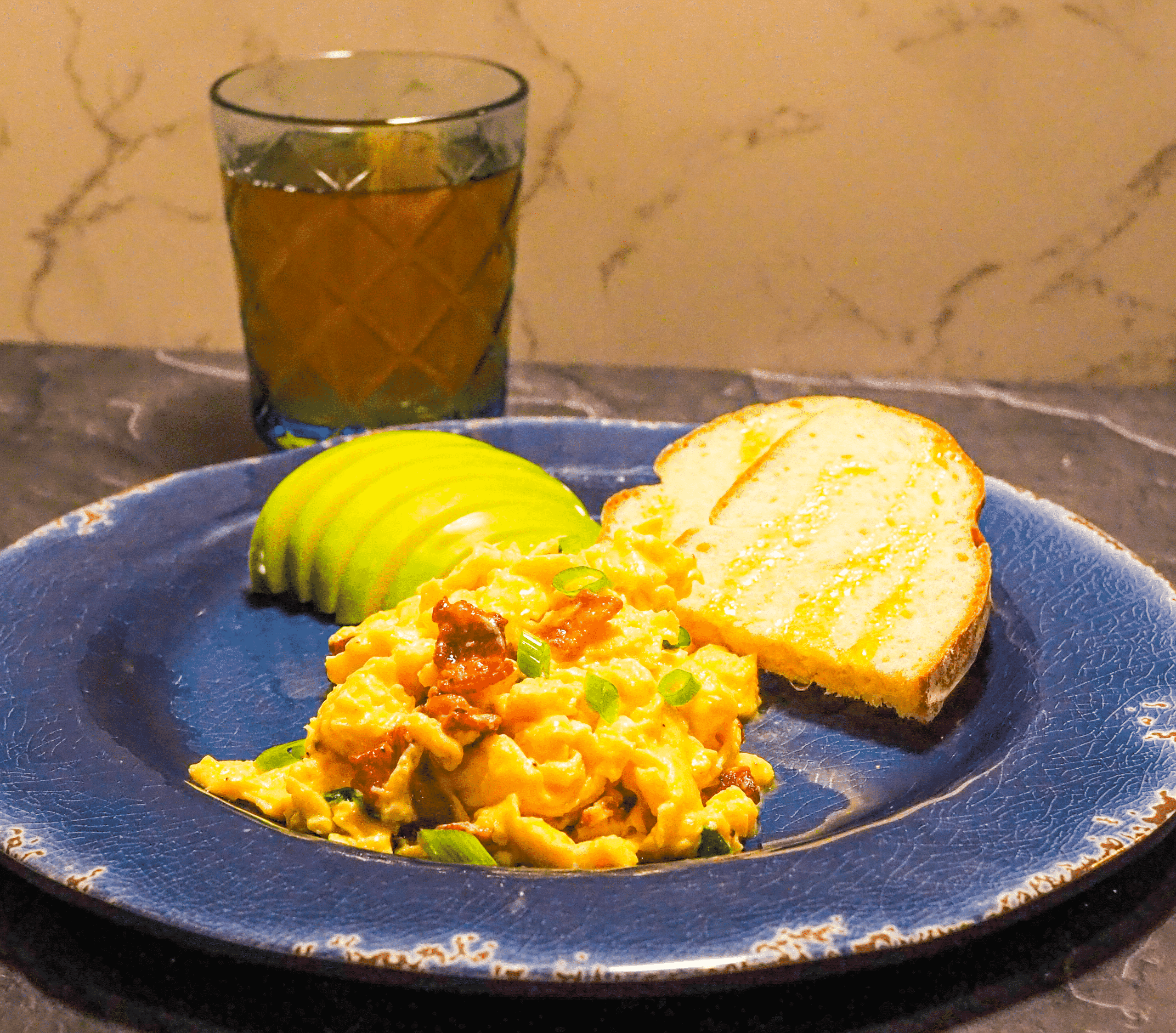 • Serve the eggs with toast and apple. Garnish with scallions.