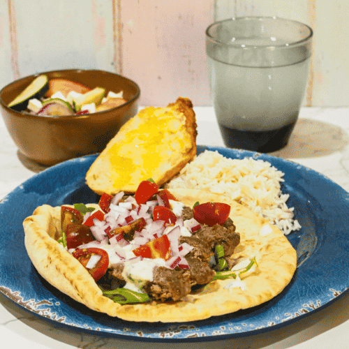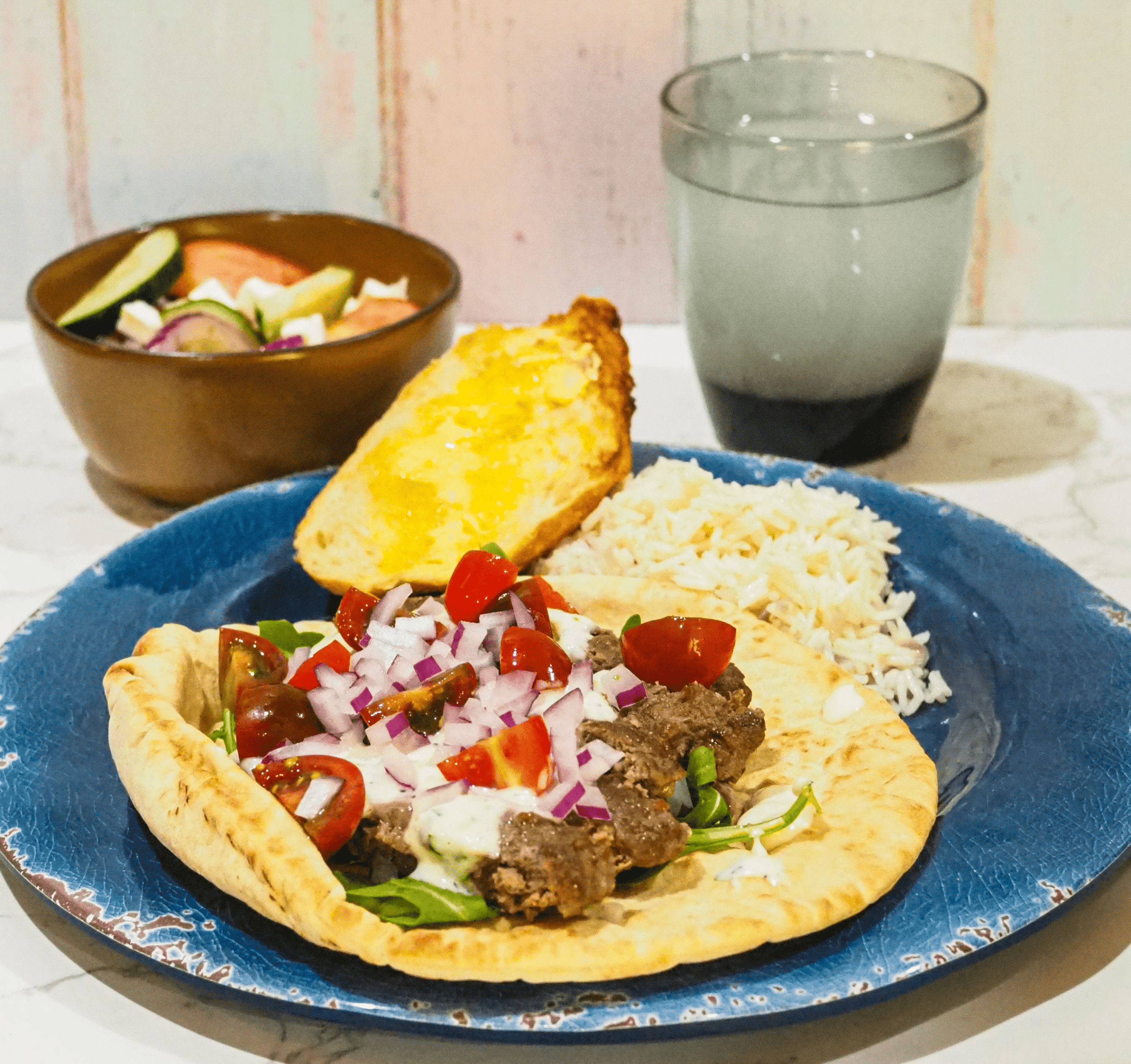 • Serve: Serve gyro with rice pilaf, village salad, buttered bread and coconut water.