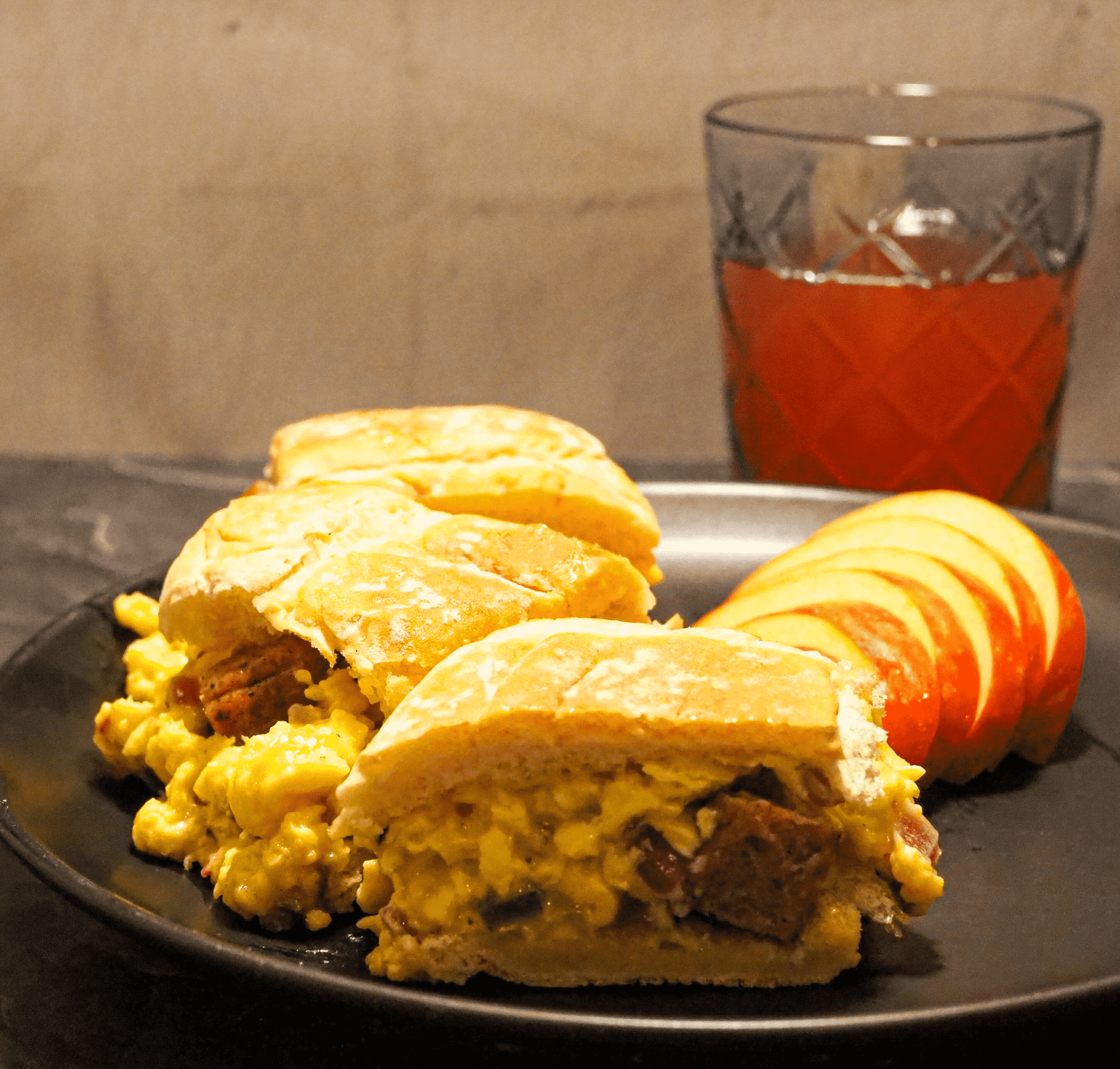 • Portion the eggs onto the buns. Serve with apple.