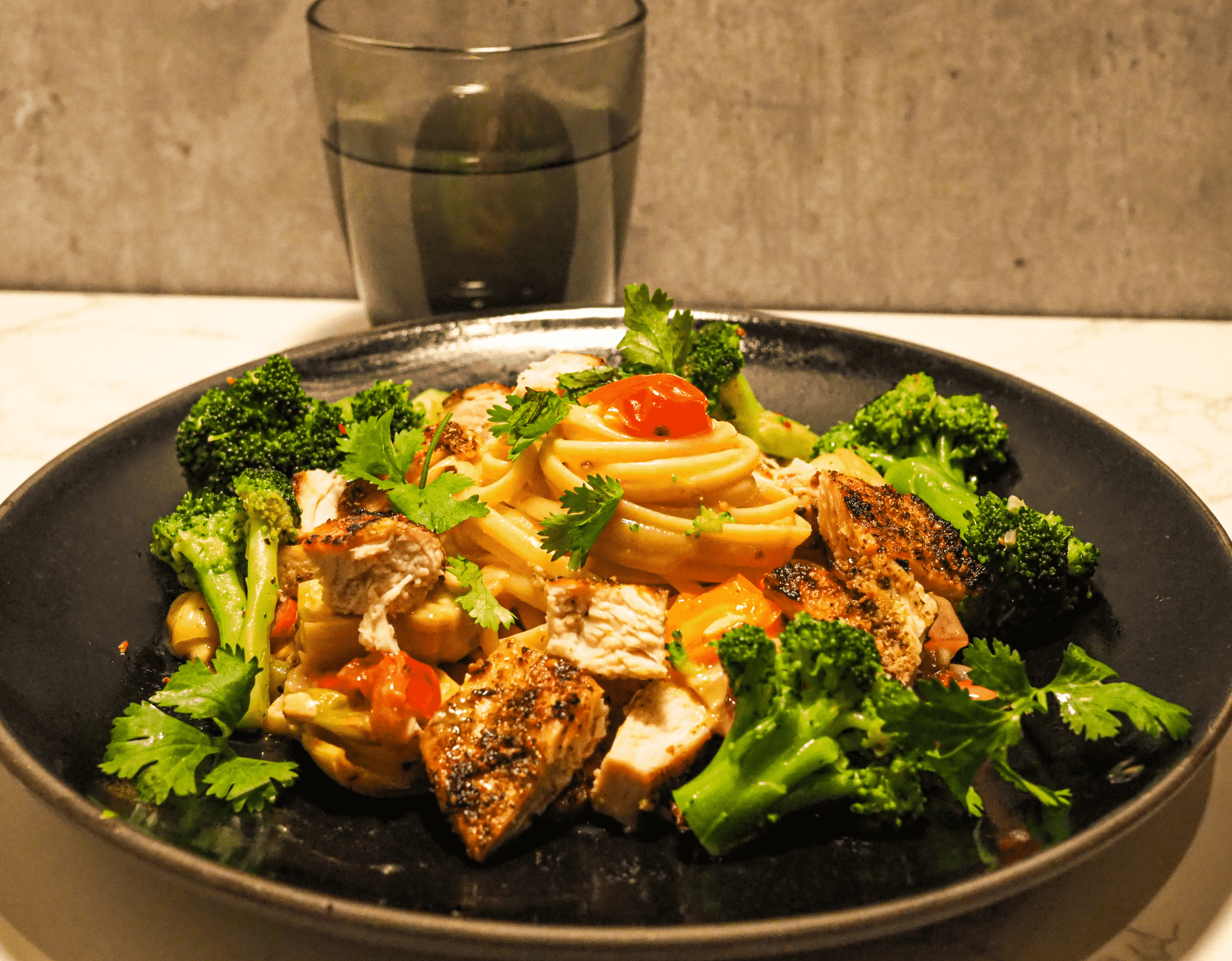 - Toss the pasta in the sauce and serve immediately so the pasta doesnt soak up all the sauce. Garnish with cilantro.
