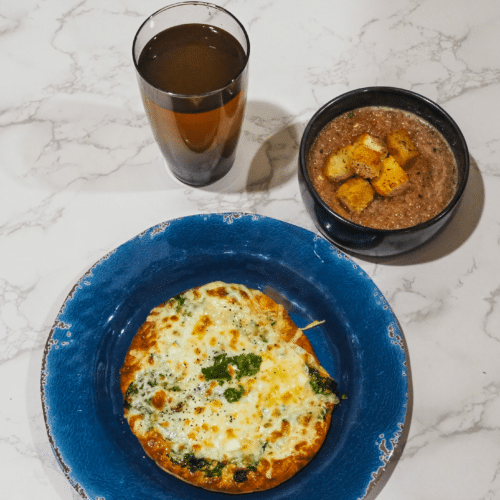 Cheesy Flatbread and Gazpacho Soup