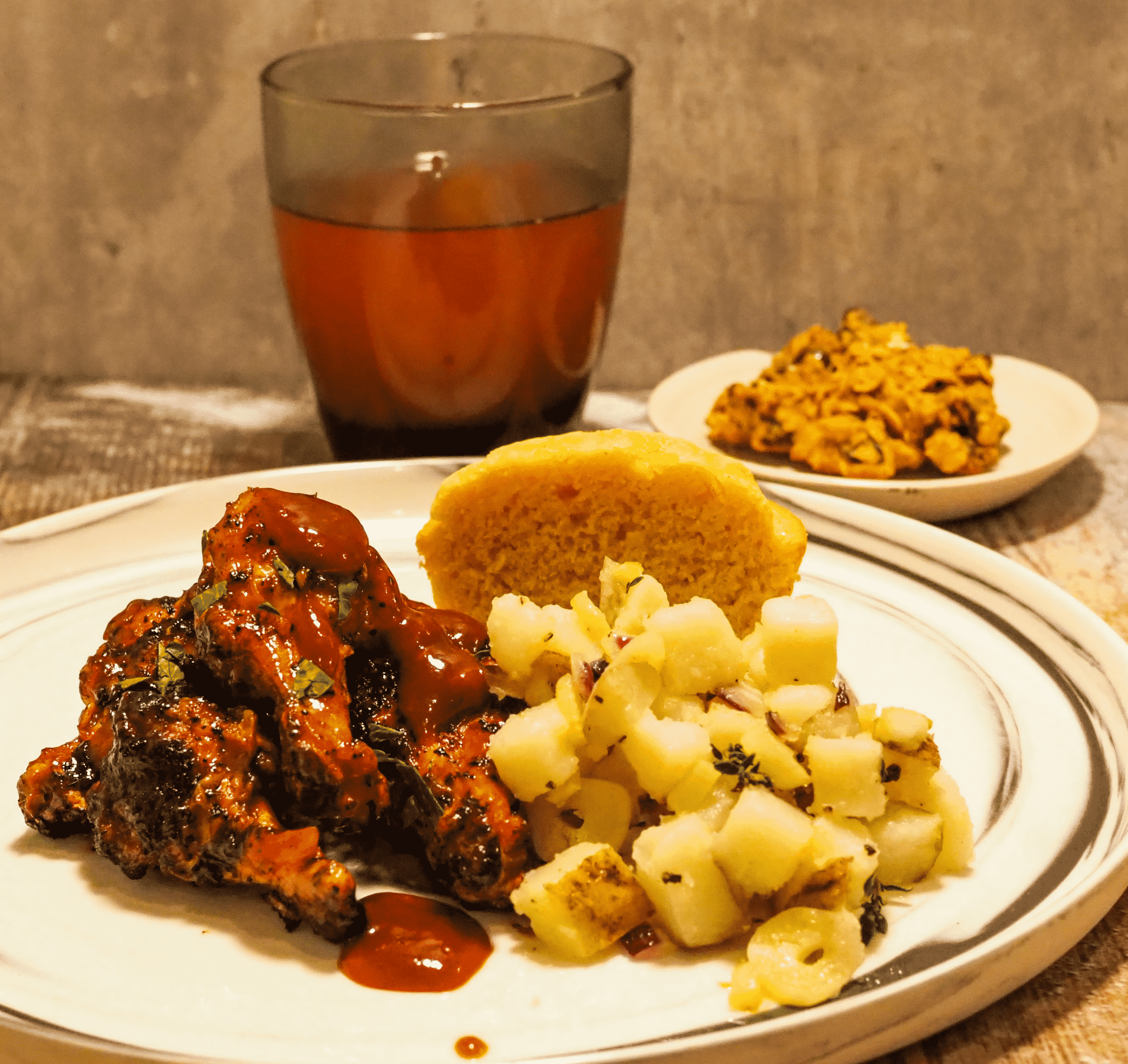 - 10 Chicken wings Drum sticks and flats (about 4 or 5 per portion depending on size)