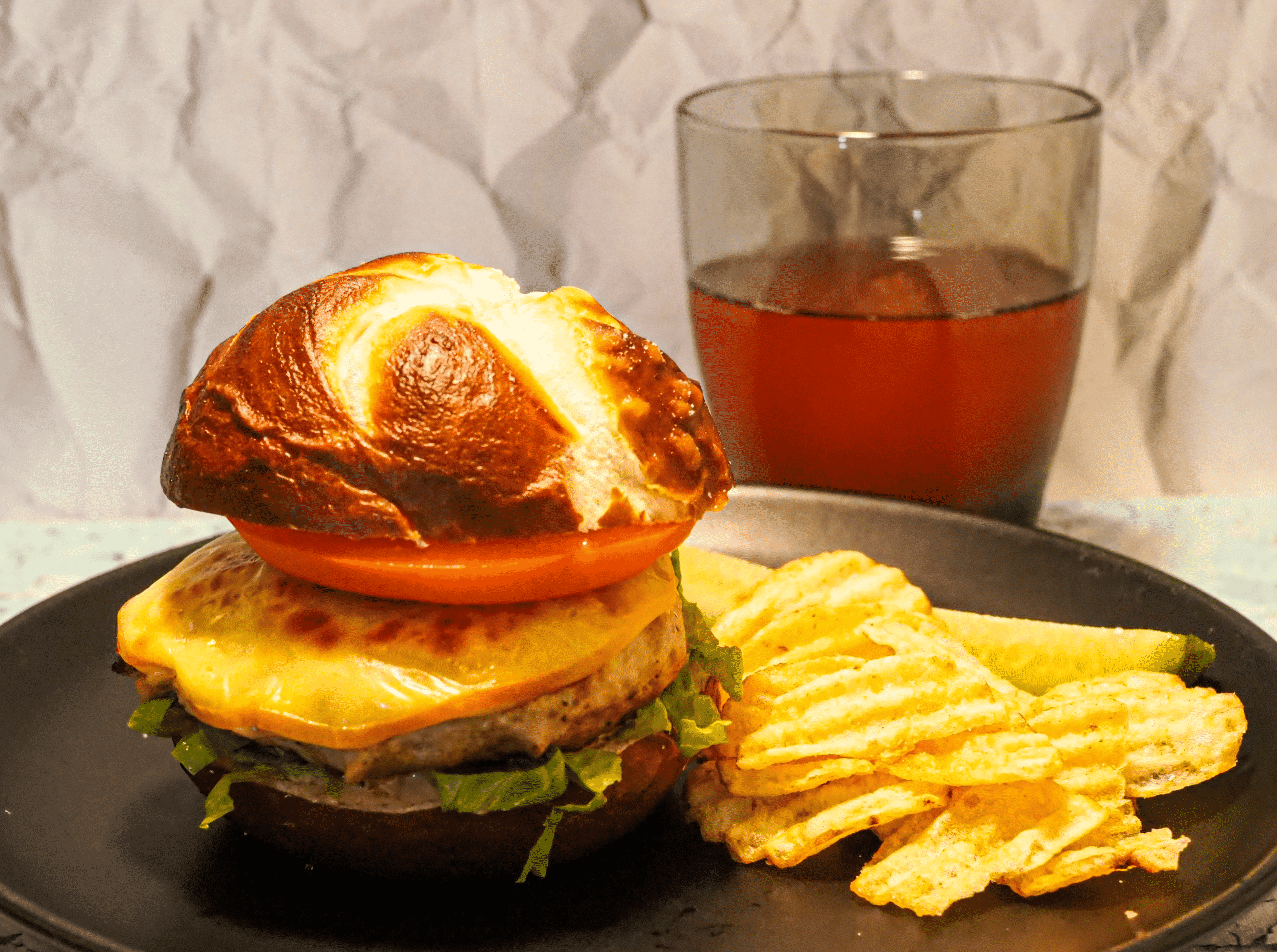 - Mix together the ground chicken, chicken seasoning, and Worcestershire sauce. Season generously with salt and pepper, and form into patties. Cook burgers to an internal temperature of 155 degrees using a thermometer. When the burger is most of the way cooked, add the cheese and place under the oven broiler to melt.