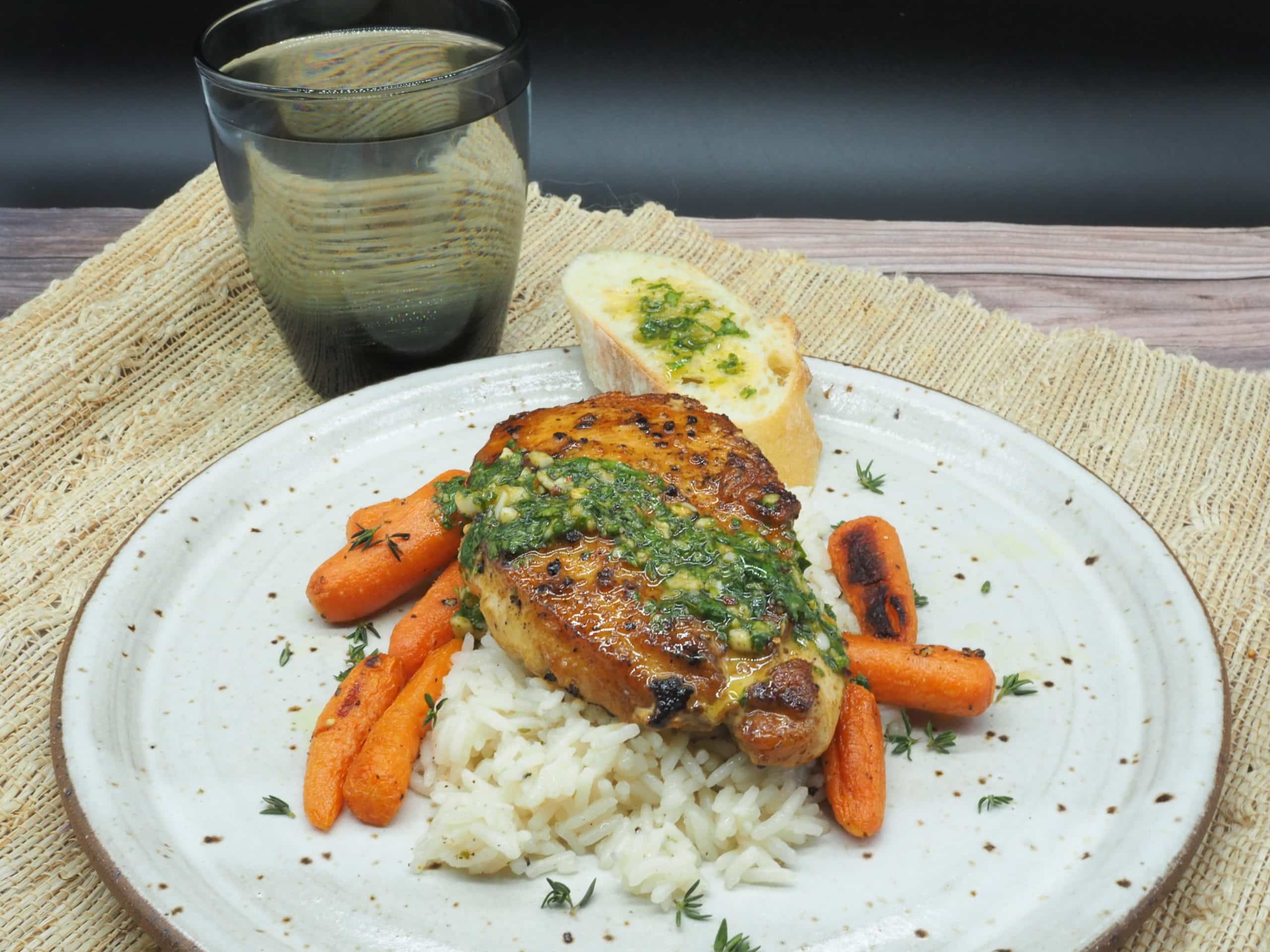 • Spoon chimichurri over chicken (about 2-3 tablespoons of chimichurri per person). Serve with bread.